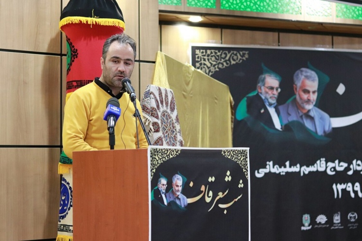 به گزارش ایکنا از زنجان، شب شعر قاف به مناسبت روز ملی مقاومت و نخستین سالگرد شهادت سردار قاسم سلیمانی، ۱۳ دی با شعرخوانی شاعران برجسته از ایران، افغانستان و پاکستان در حسینیه اعظم زنجان برگزار و از طریق شبکههای مجازی پخش شد.